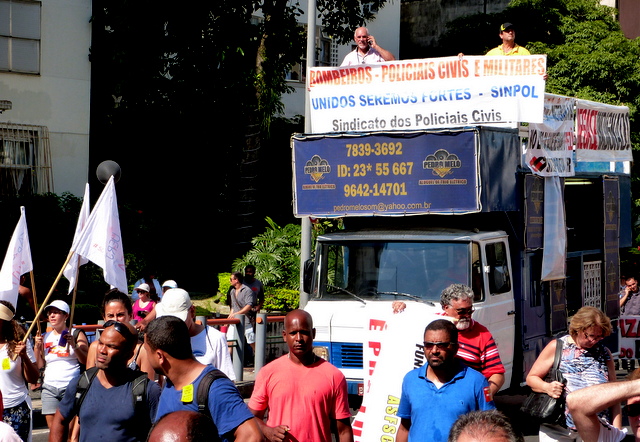 PMs e Bombeiros, na Cinelândia (com o carro de som do SINPOL, porque o